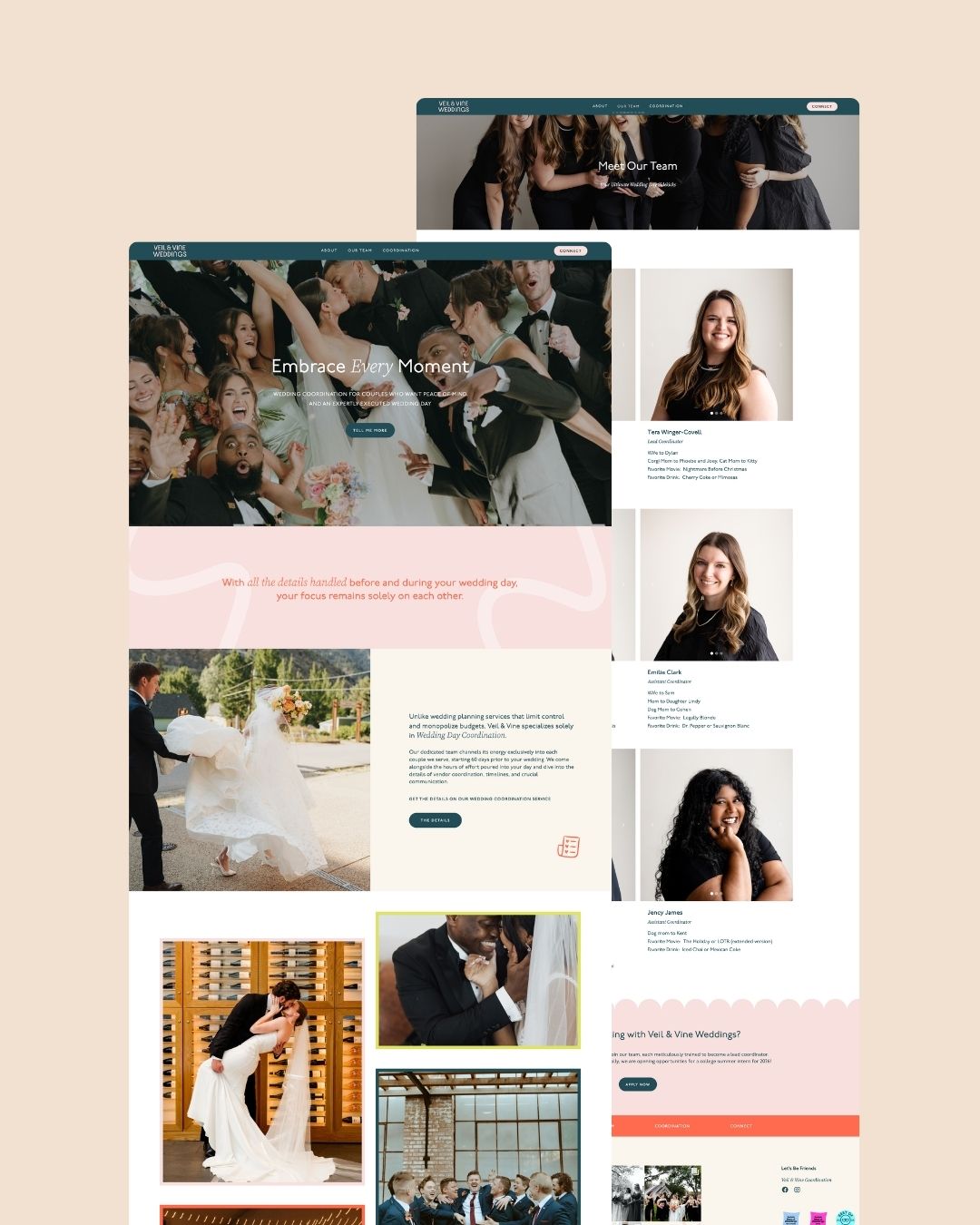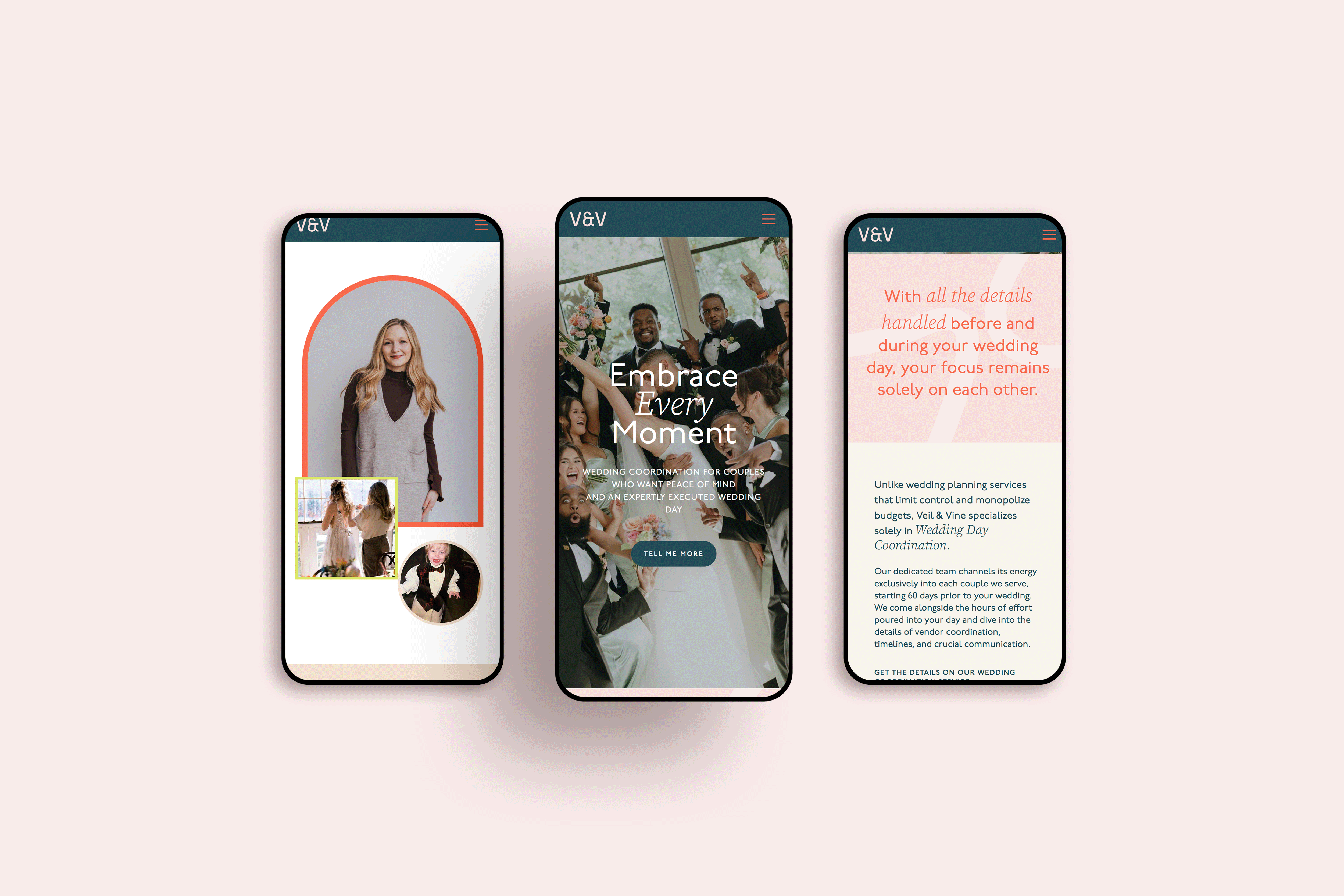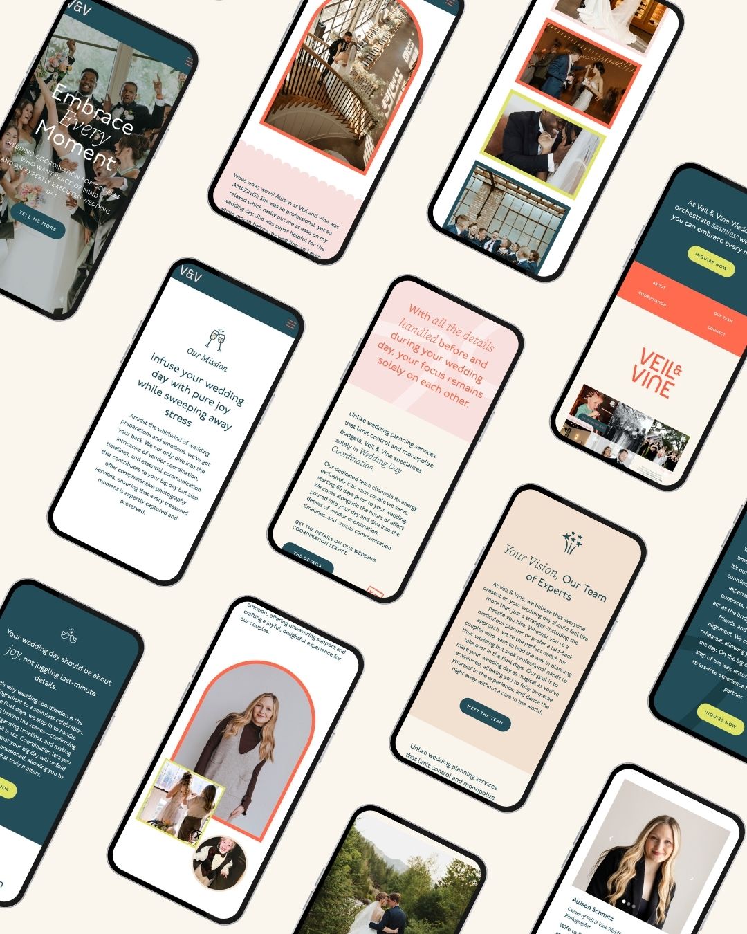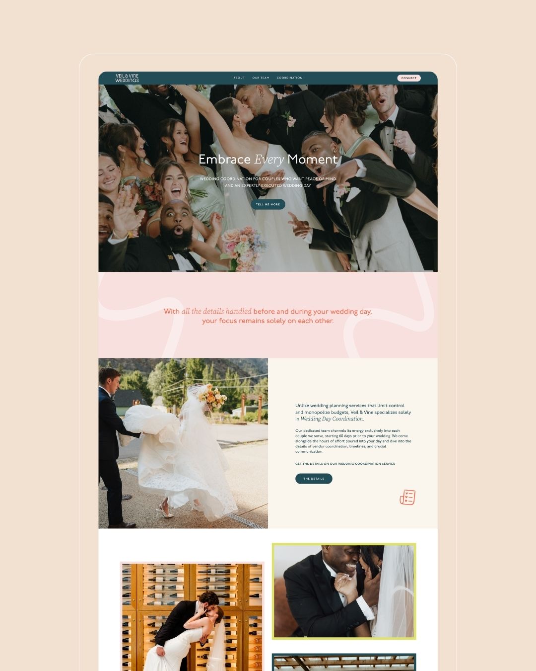 Veil & Vine Weddings came to me at a pivotal stage of growth. While Allison’s reputation as a wedding coordinator had expanded, her brand identity and website design no longer reflected the elevated, high-end wedding experience she provides.